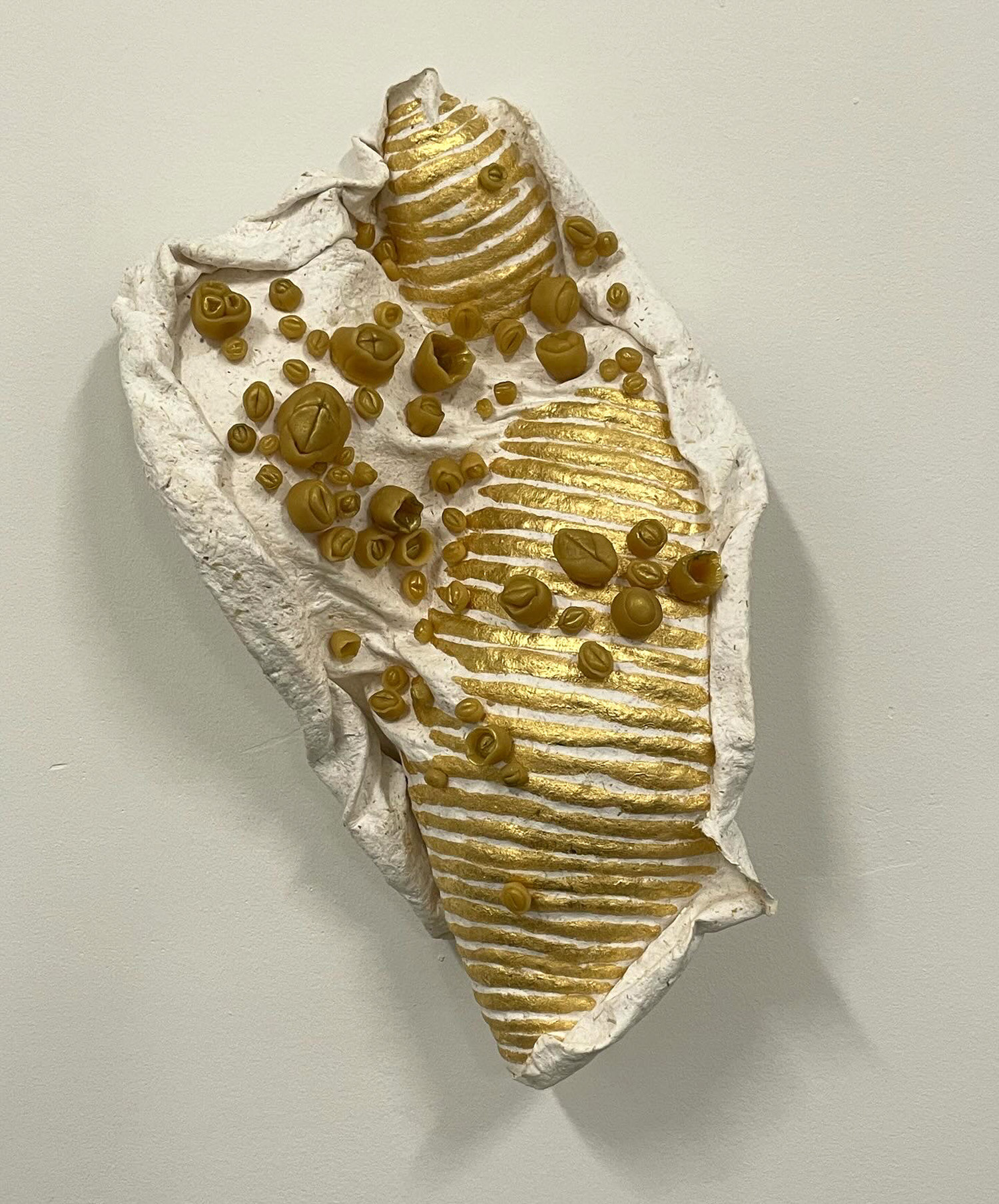 Vessels of Amphitrite, resin, ground shell, gold leaf, 22x15x6 inches, 2024