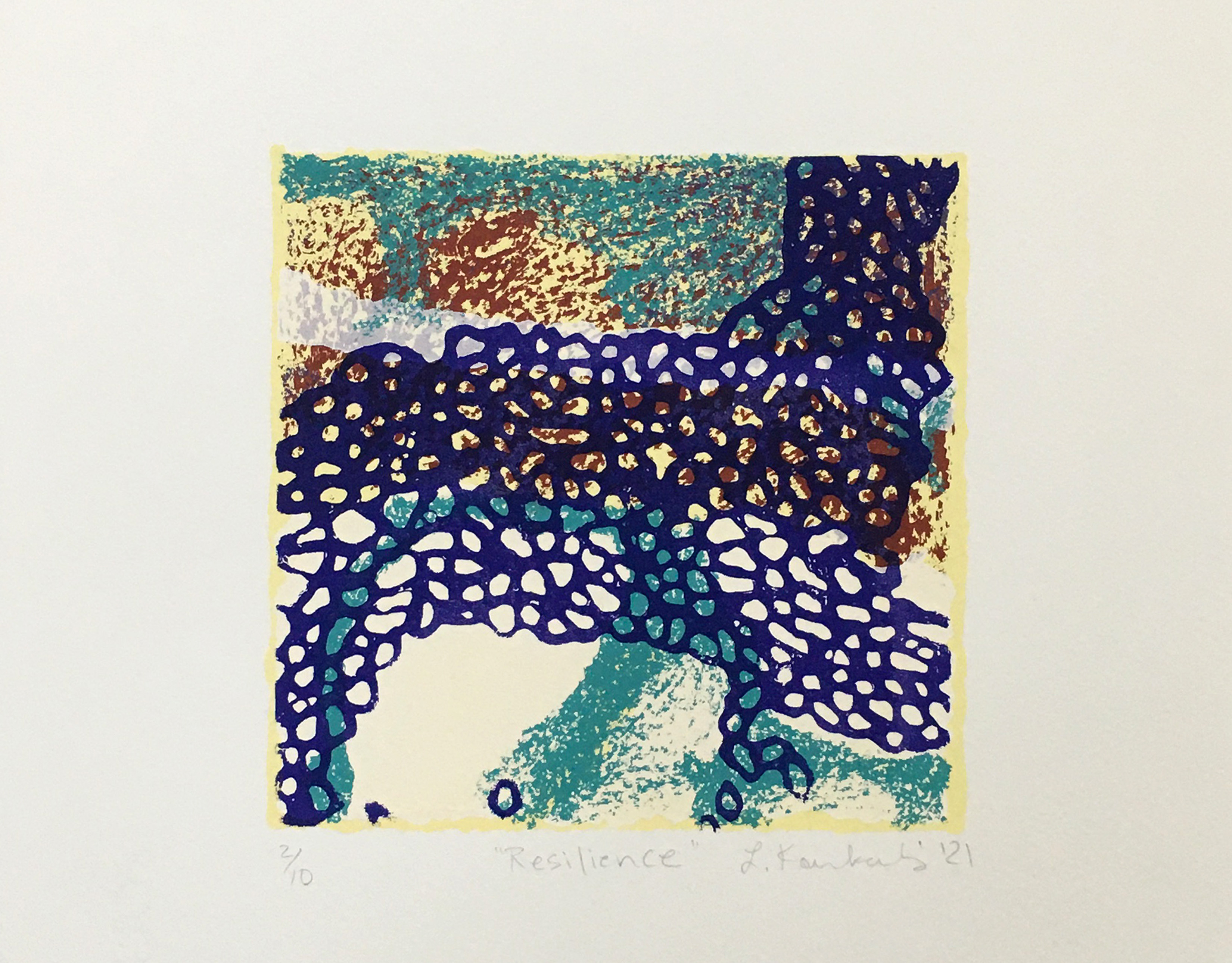 Seascape, aquatint etching & silkscreen, monoprint, 20 x 78 inches, 2021